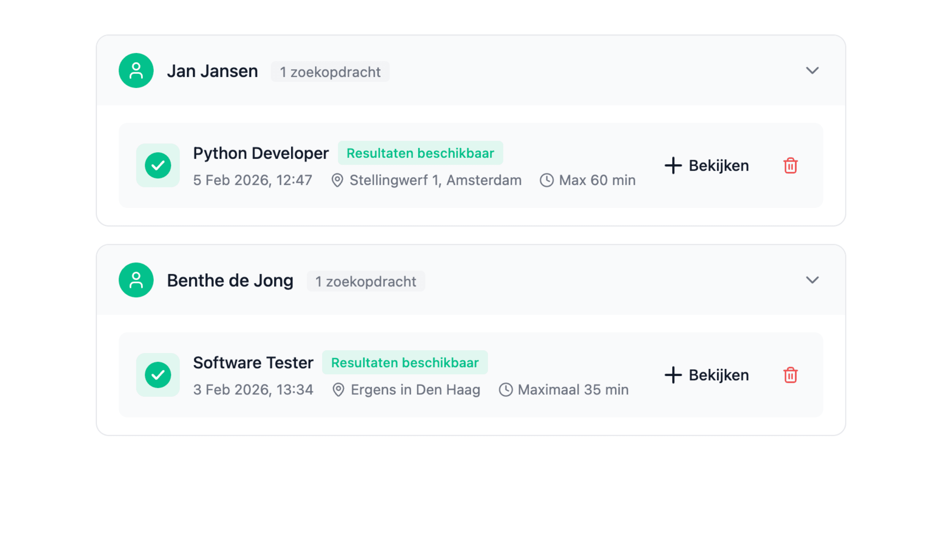 Ons systeem vindt gemiddeld 15 goed matchende opdrachten per consultant. Vaak nog veel meer!