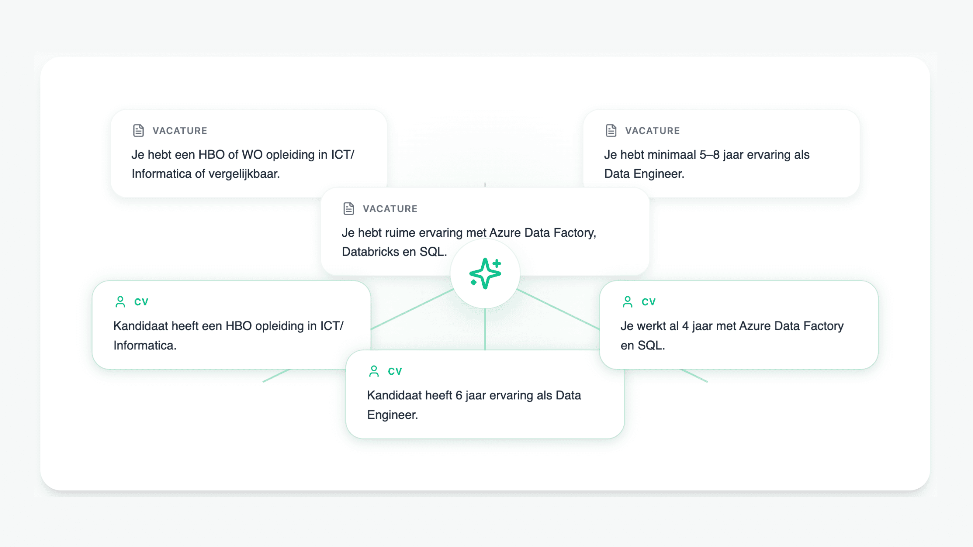 Geen vervanging van je ATS of CRM. Wel één overzicht van matches, aanbiedingen en salesacties.